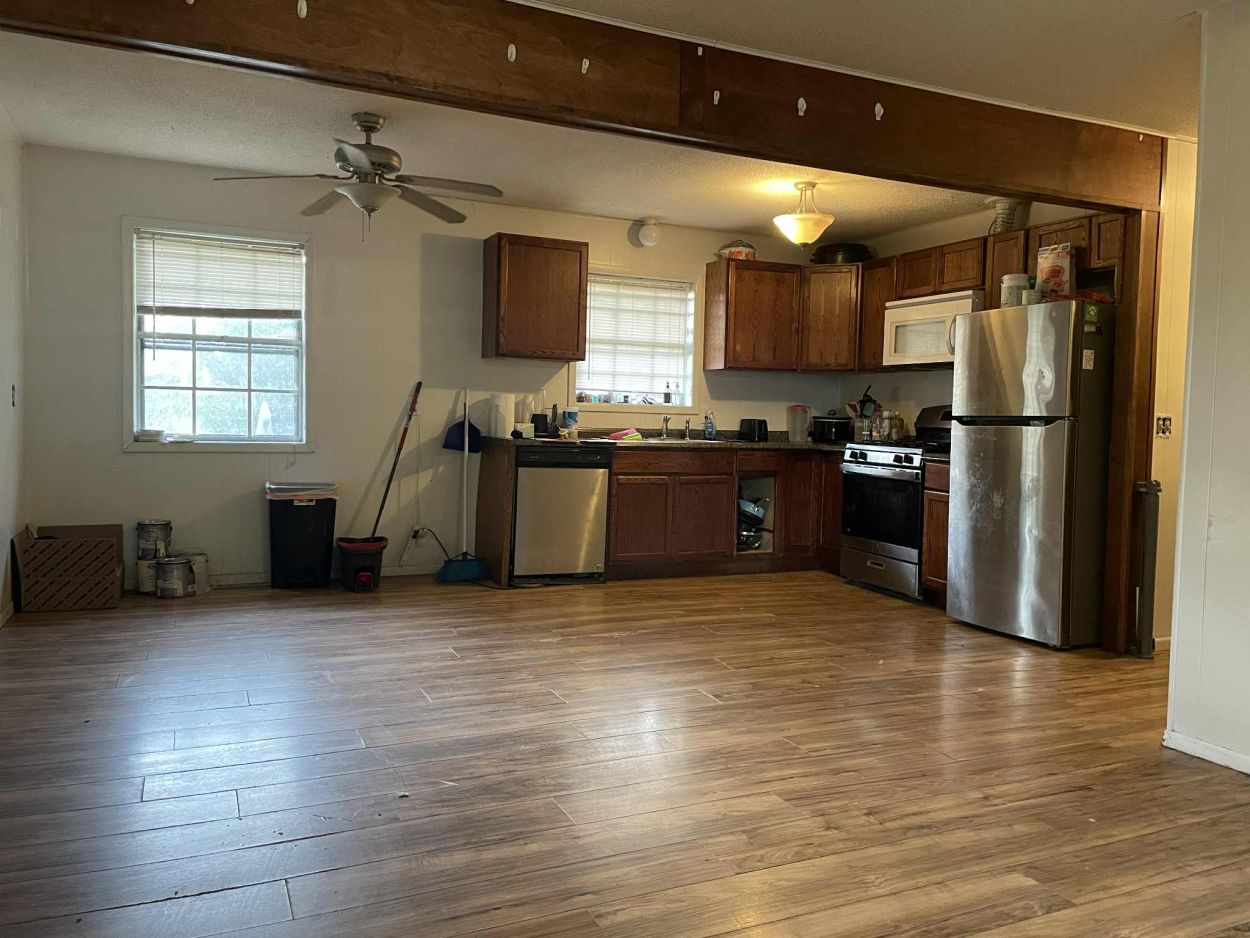 Charming 4-bedroom, 1-bath home on a spacious corner lot! This inviting property features an open-concept living area perfect for entertaining and everyday comfort. The flexible 4th bedroom offers great potential as a bonus room, home office, or playroom to fit your needs. Enjoy peace of mind with a durable metal roof and plenty of outdoor space in the fenced backyard—ideal for pets, kids, or relaxing evenings. Conveniently located on a desirable corner lot, this home blends function, flexibility, and value!