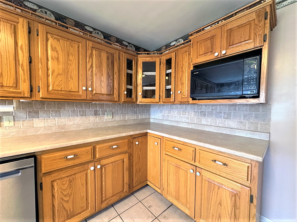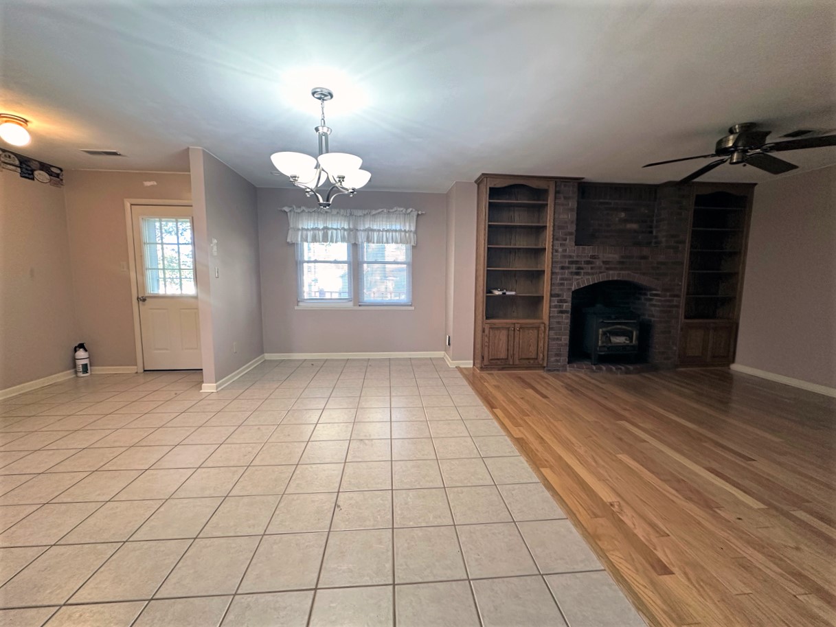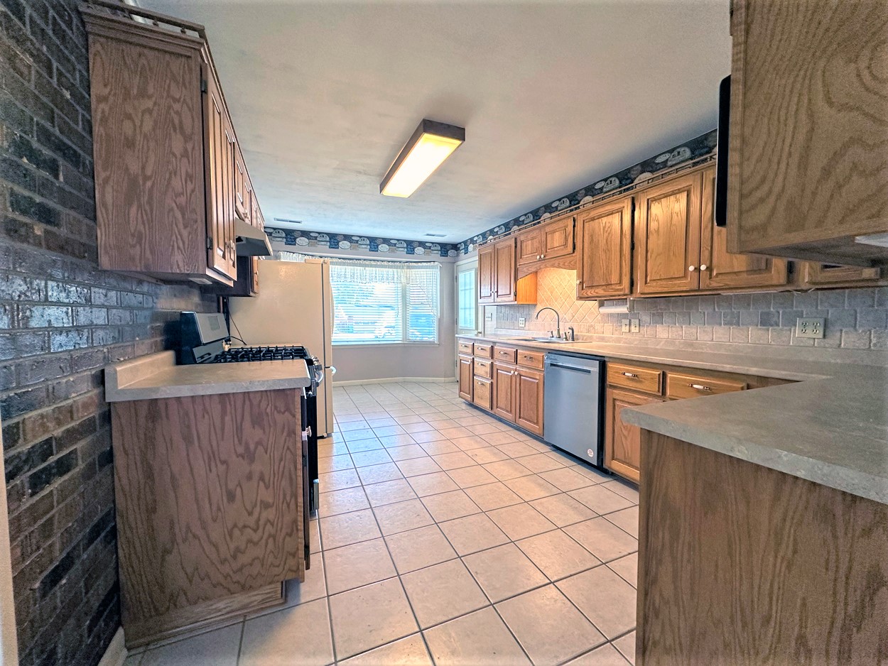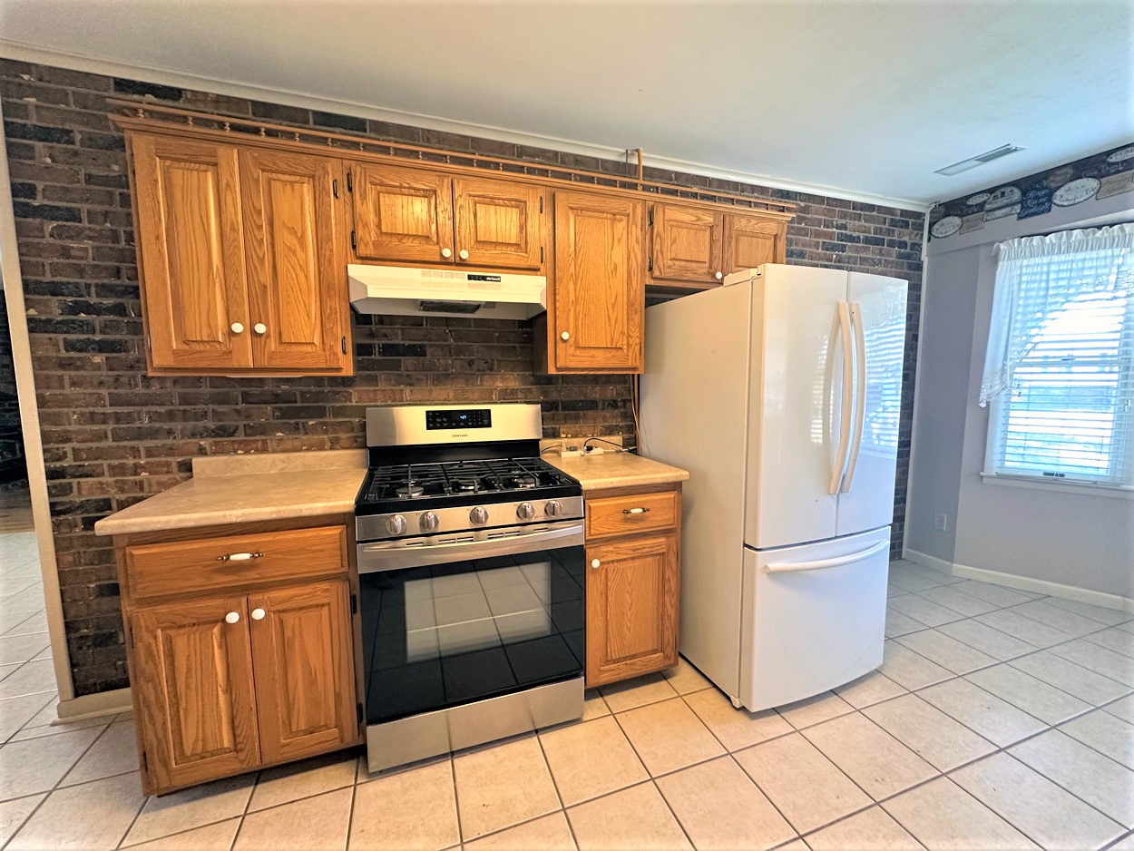 This inviting home has such charm and appeal. The living room and dining room have hardwood flooring and the cozy family room has a lovely brick fireplace with built in shelving and a wood burning stove that sets in an opening in the brick. The kitchen has plenty of cabinets and a tumbled tile backsplash, a dishwasher, gas range, microwave, disposal and a refrigerator. Central heat and air is natural gas and the architectural room is approximately one year old. Three bedrooms, 1 ½ baths and attached garage and lots of concrete parking area and a two tiered deck. The primary bedroom has an adjoining ½ bath and a full bath is located near the other bedrooms. A separate laundry room has cabinets for storage. Lots of great features.