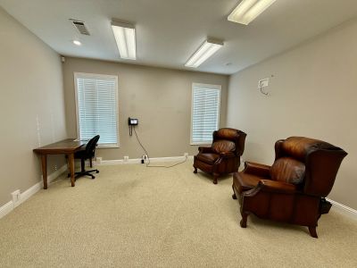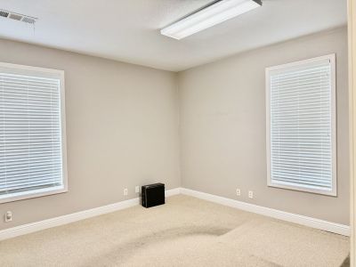 An attractive tile-floored front foyer welcomes clients, while large windows throughout provide abundant natural light. The property is also equipped with a security alarm system for added peace of mind.